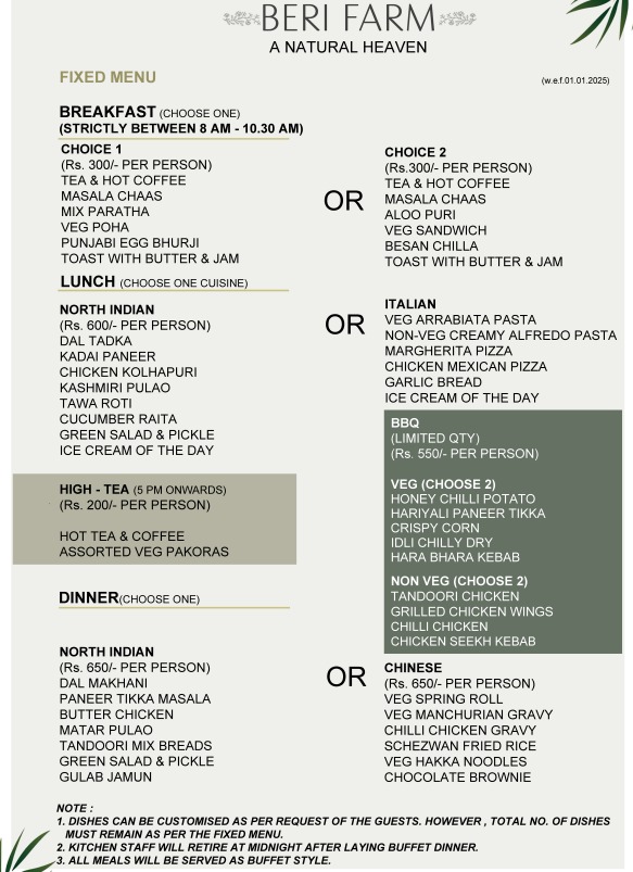 Farmhouse Price- 25,000 Rupees on Weekdays upto 16 people and 35,000 Rupees on Weekends upto 16 people (Maximum 25 Guests can be accommodated) | Breakfast and High Tea are included in this package