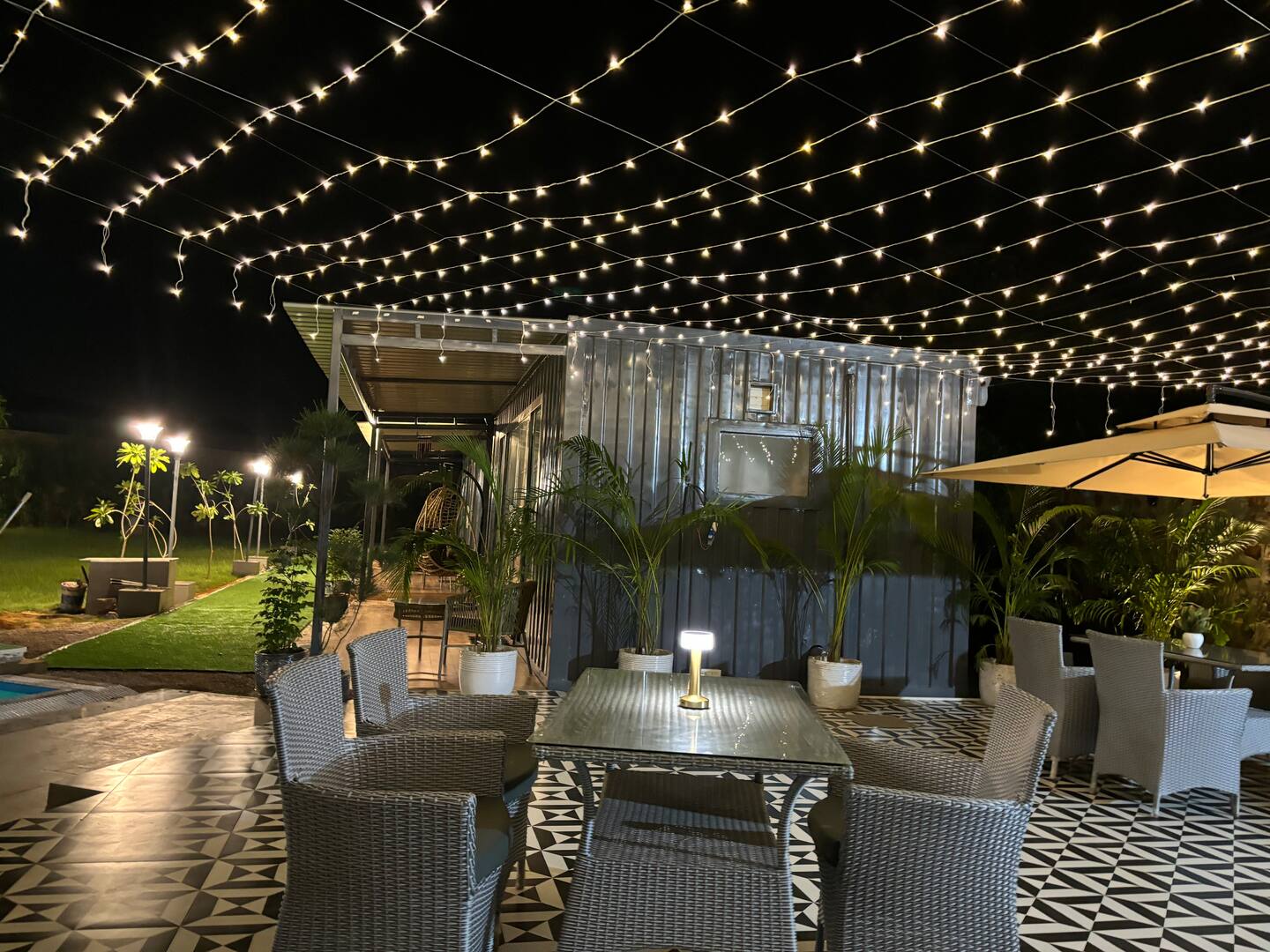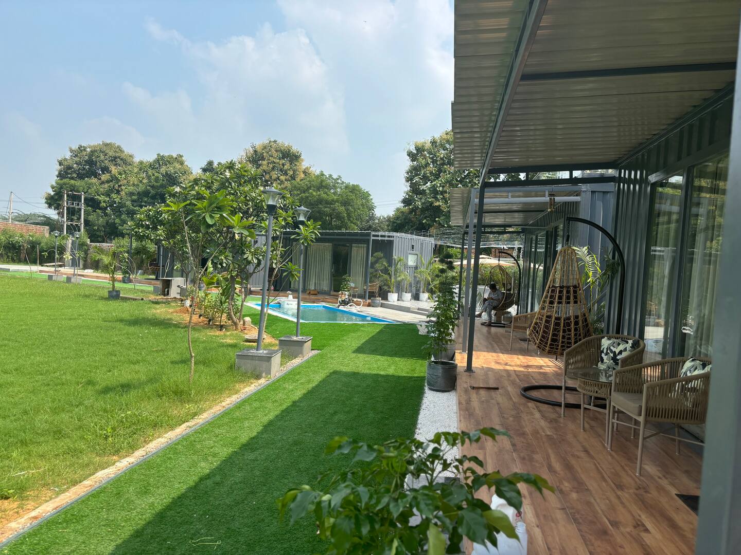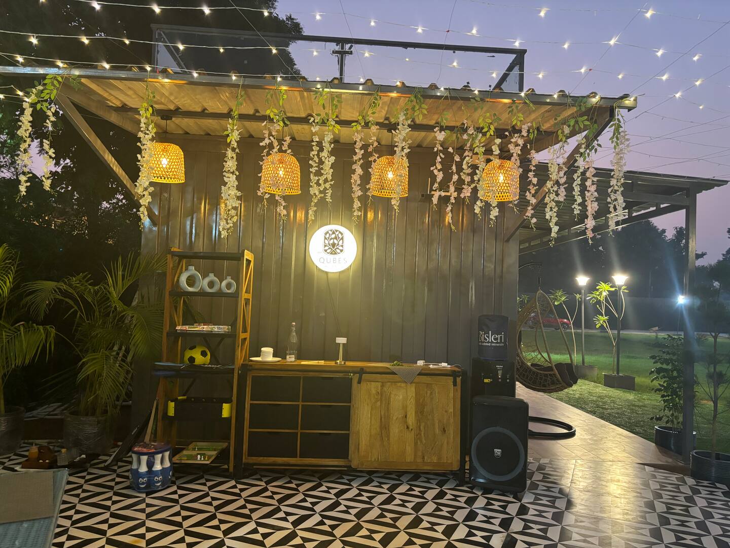 Qubes Farmhouse Manesar is a luxurious, elegantly rustic retreat near Delhi NCR, offering an ideal setting for large gatherings, parties, and weekend getaways. It features 4 Premium Rooms with king-sized beds and sofa-cum-beds, all offering a garden and pool view. The property boasts expansive gardens and a spacious poolside area, making it perfect for outdoor events like weddings, receptions, or pool parties.
