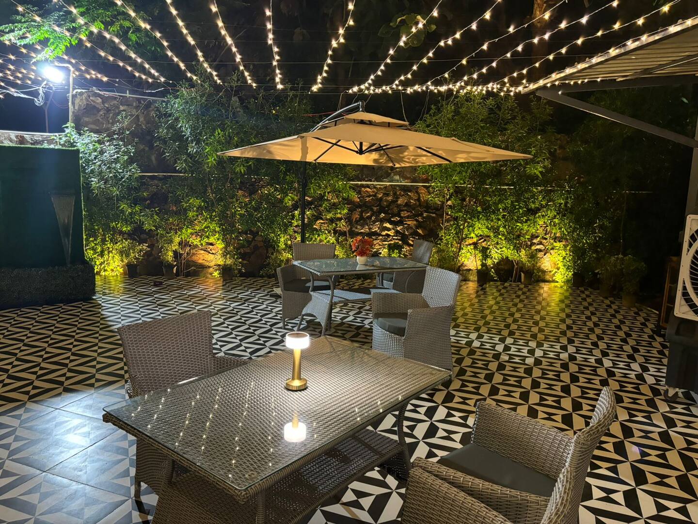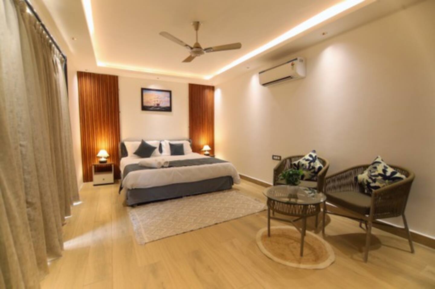 Guests can enjoy a wide range of amenities, including a central living space, in-house food service with buffet-style meals (Lunch, Hi-Tea, Snacks, Dinner, and Breakfast), and entertainment options like an in-house music system and karaoke mic, ensuring a comfortable and memorable stay.