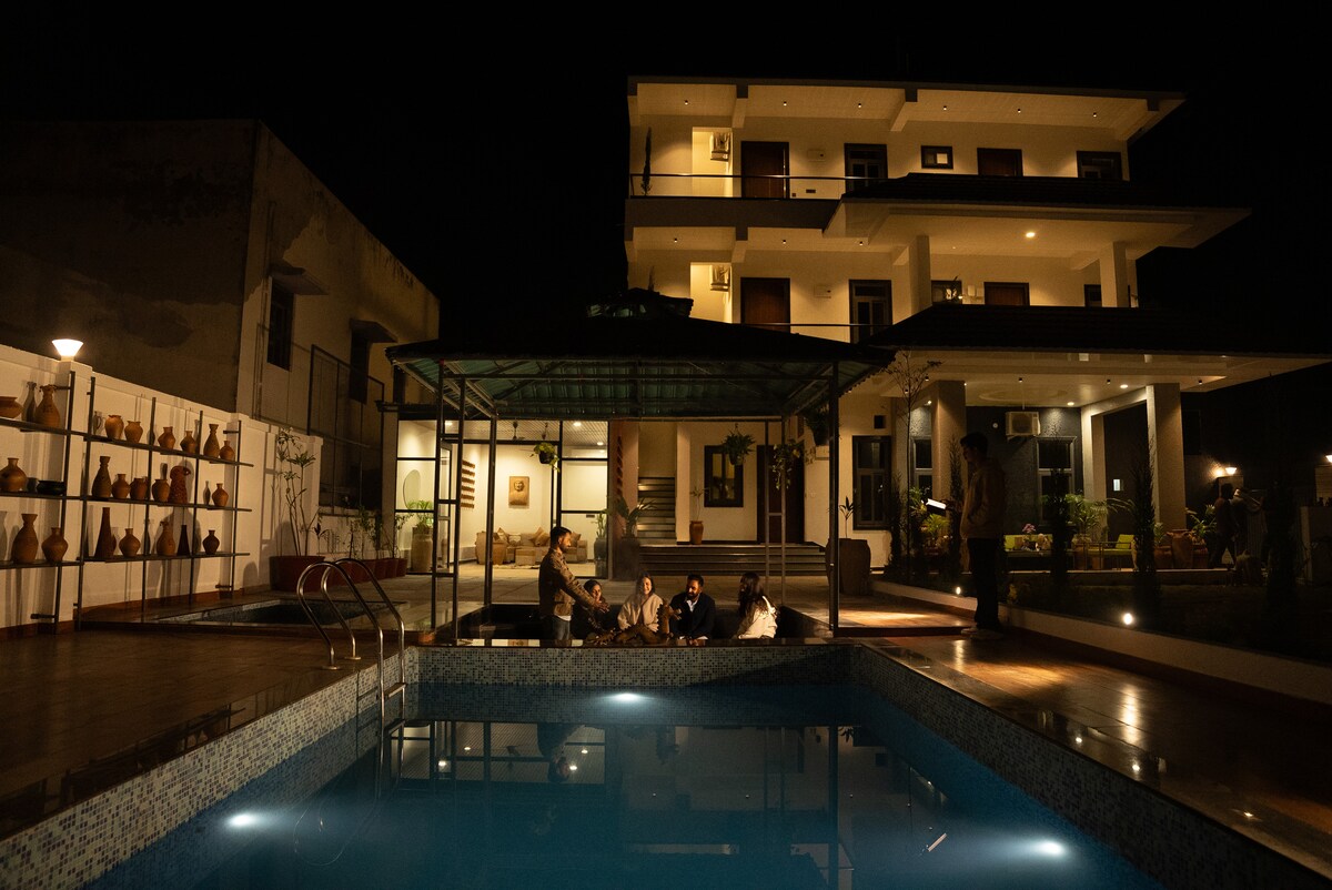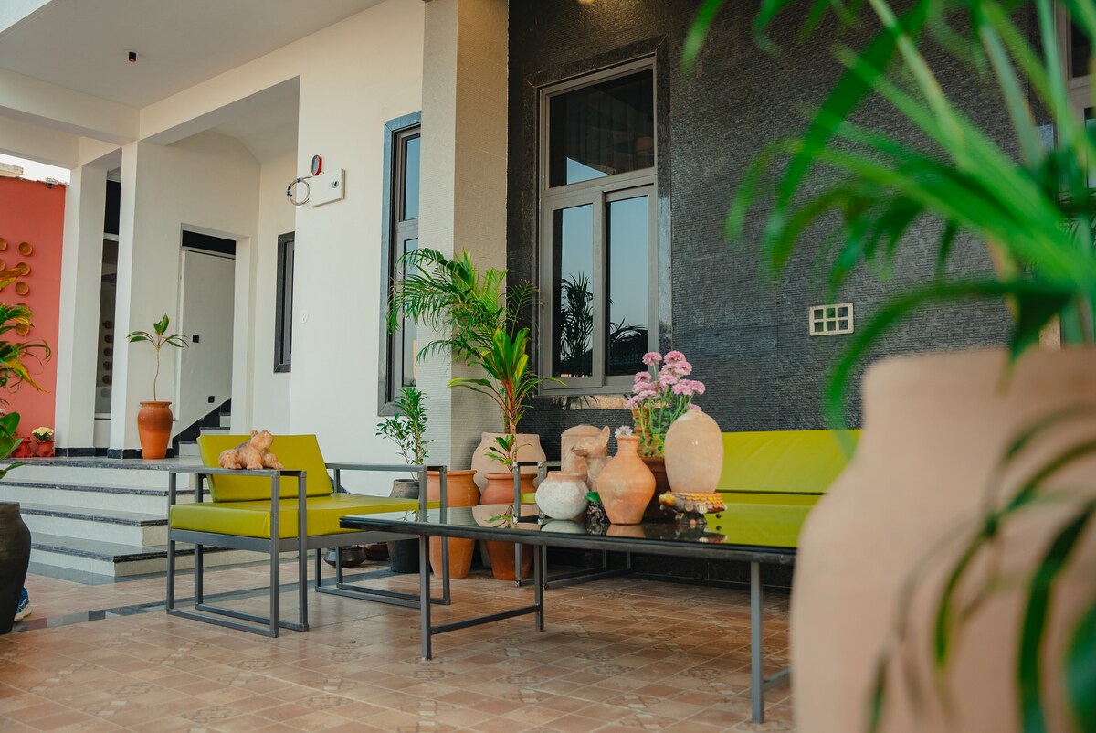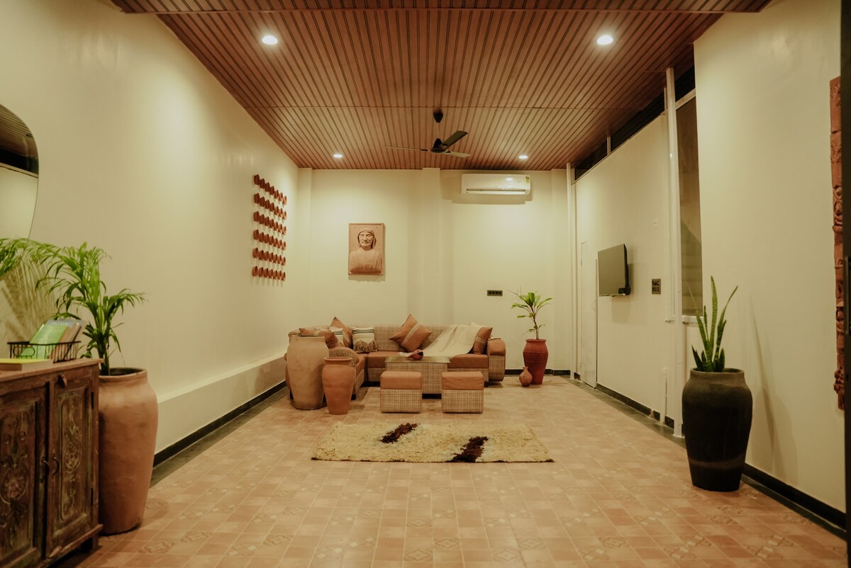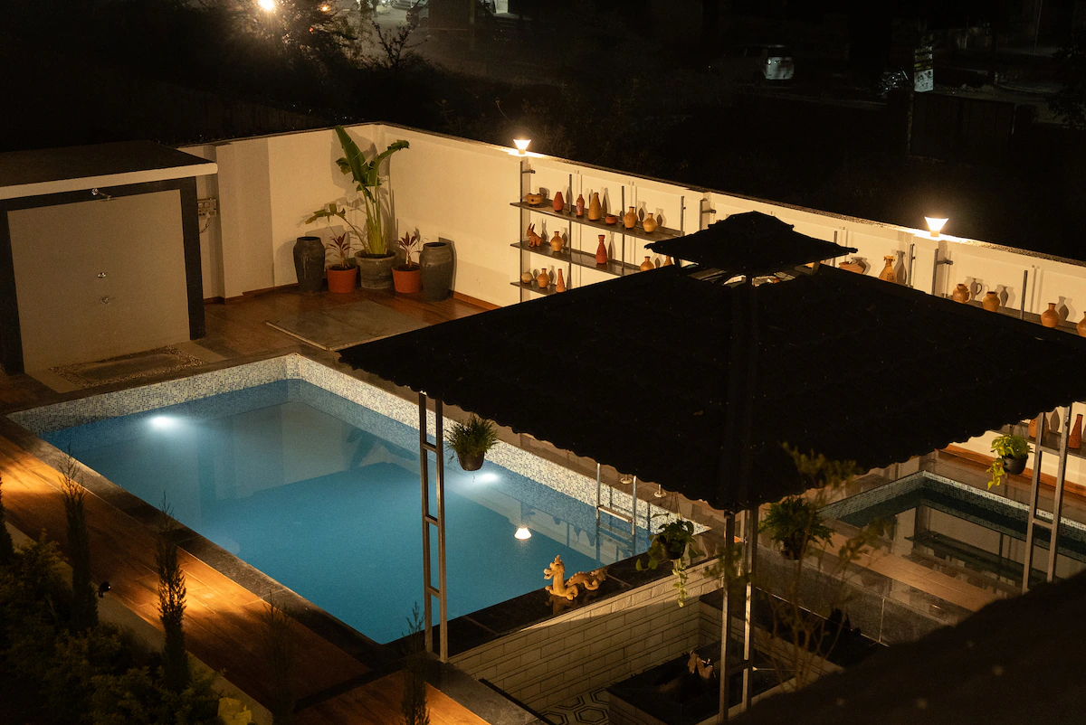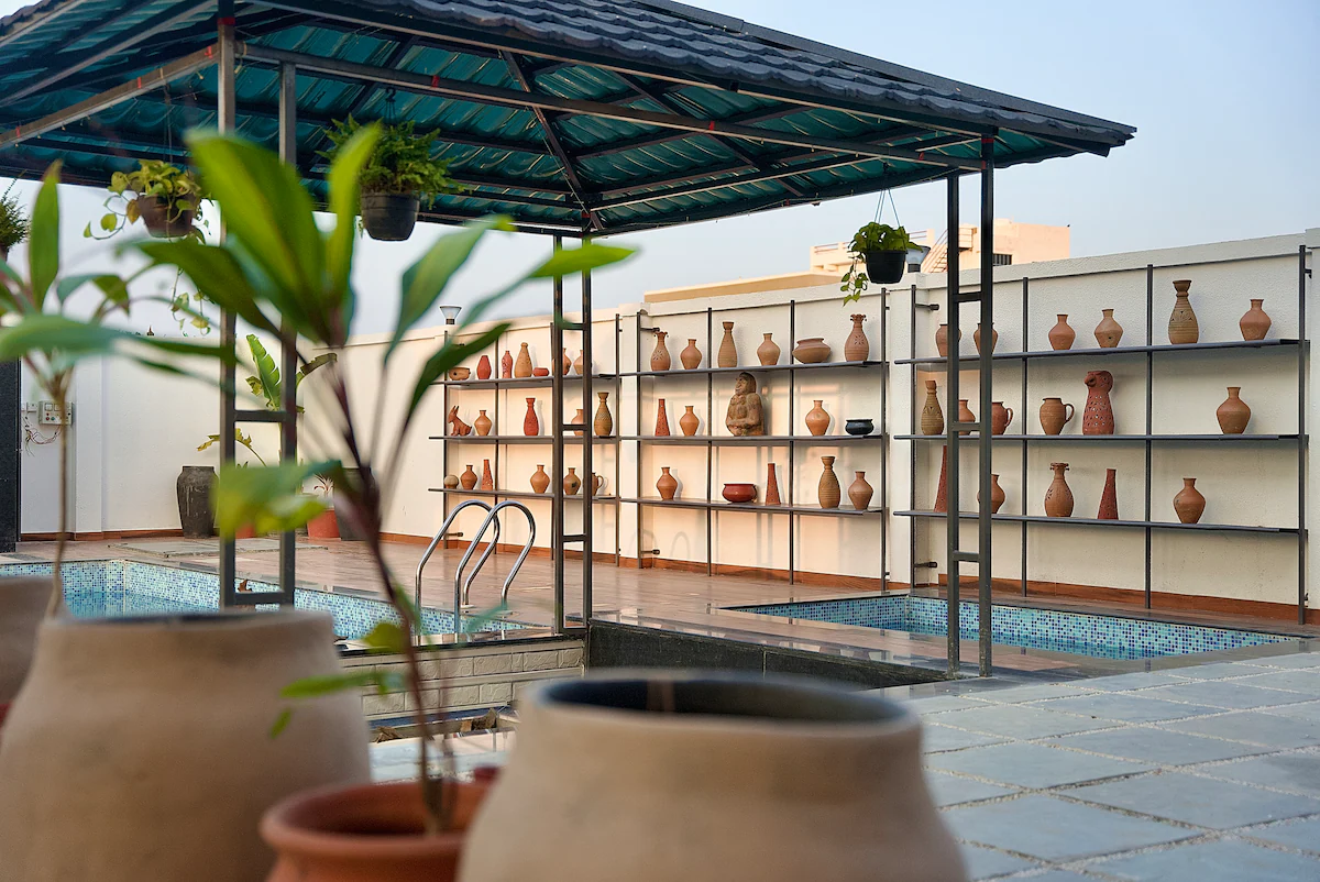 The Pot Villa Udaipur is defined by a distinct boutique aesthetic, offering a modern and highly “Instagrammable” environment where vibrant colorful motifs meet artisanal pottery accents and chic minimalist furniture. It provides guests with prime seclusion, nestled in a peaceful pocket of Udaipur that boasts breathtaking panoramic views of the Aravalli hills, yet remains conveniently just a short drive from the iconic Lake Pichola. Designed with a group-friendly philosophy, the villa’s expansive layout is perfectly tailored for memorable family reunions, get-togethers with friends, or intimate creative retreats.